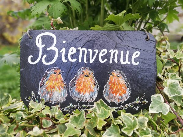 Ardoise épaisse (naturelle) peinte à la main, protégée par un vernis marin, pièce unique