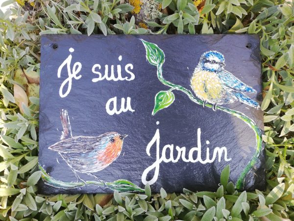 Ardoise épaisse (naturelle) peinte à la main, protégée par un vernis marin, pièce unique
