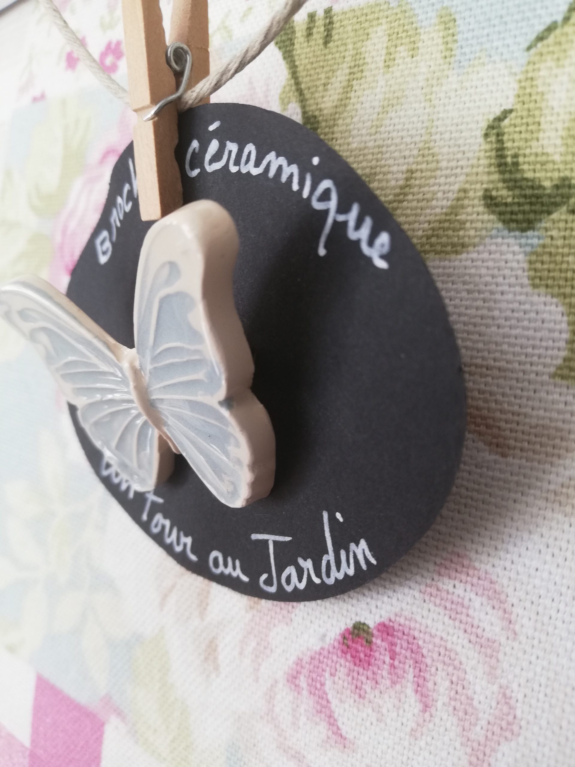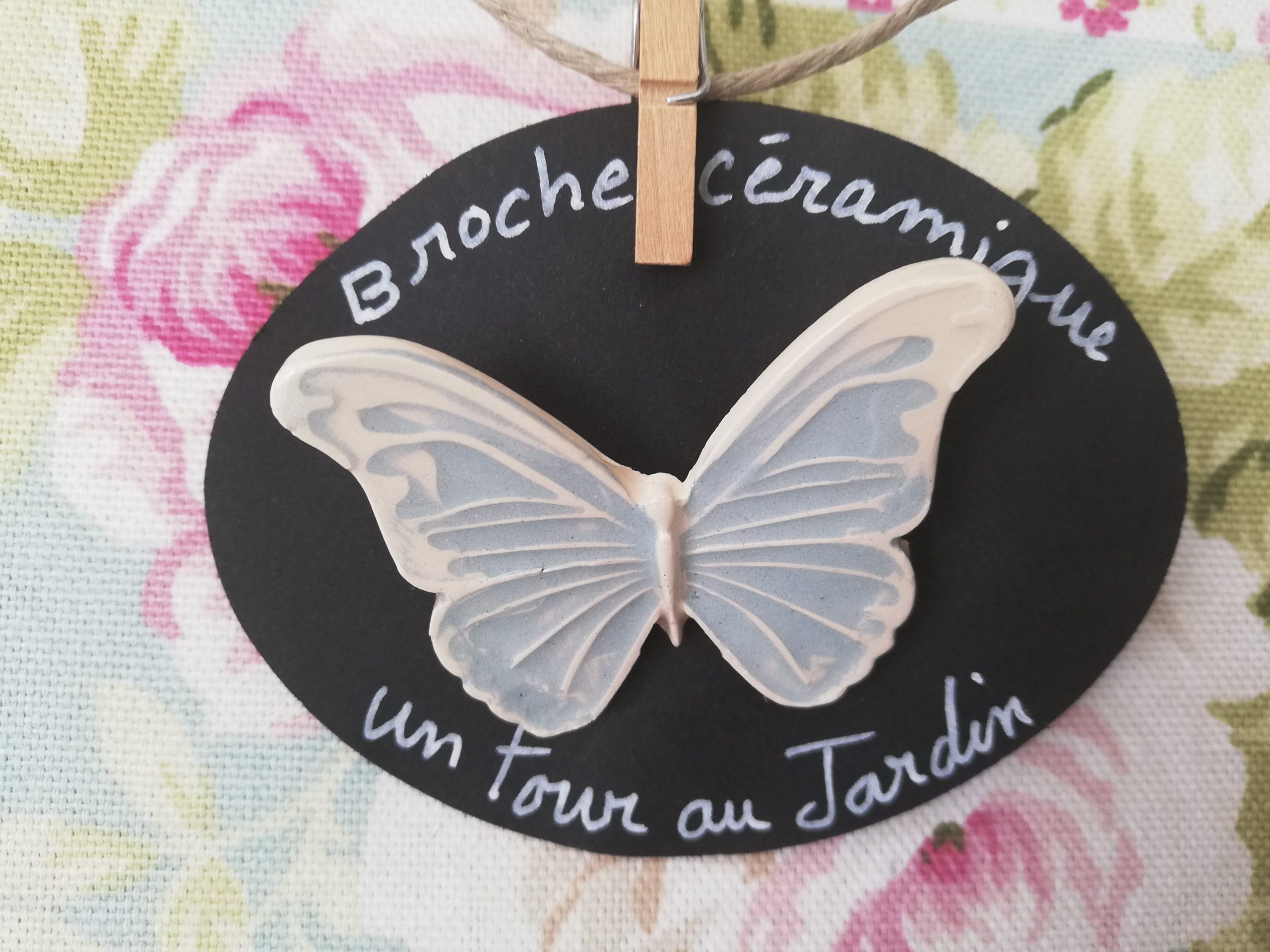 Broche en céramique faïence, bleu ciel réalisé entièrement à la main, pièce unique