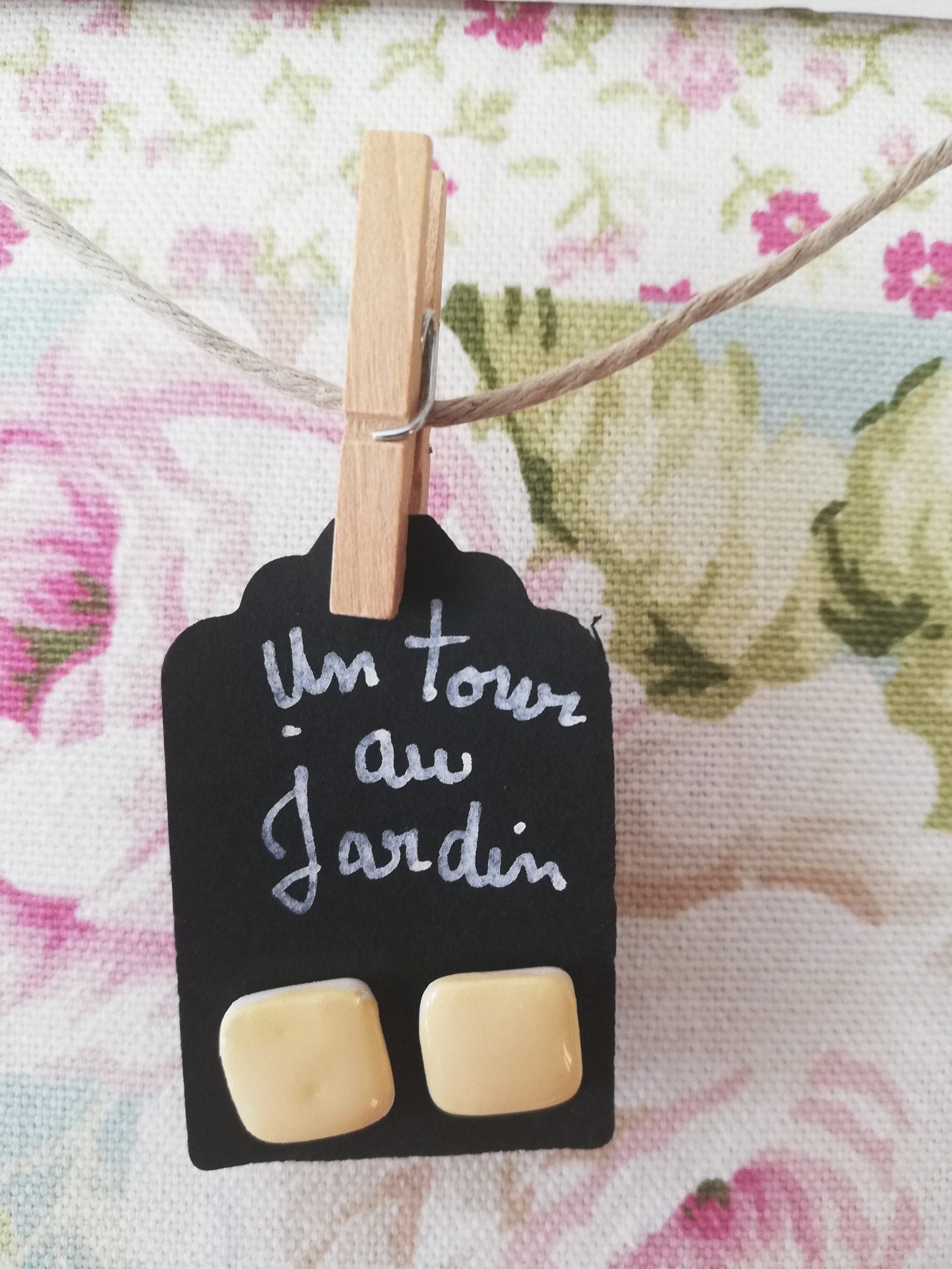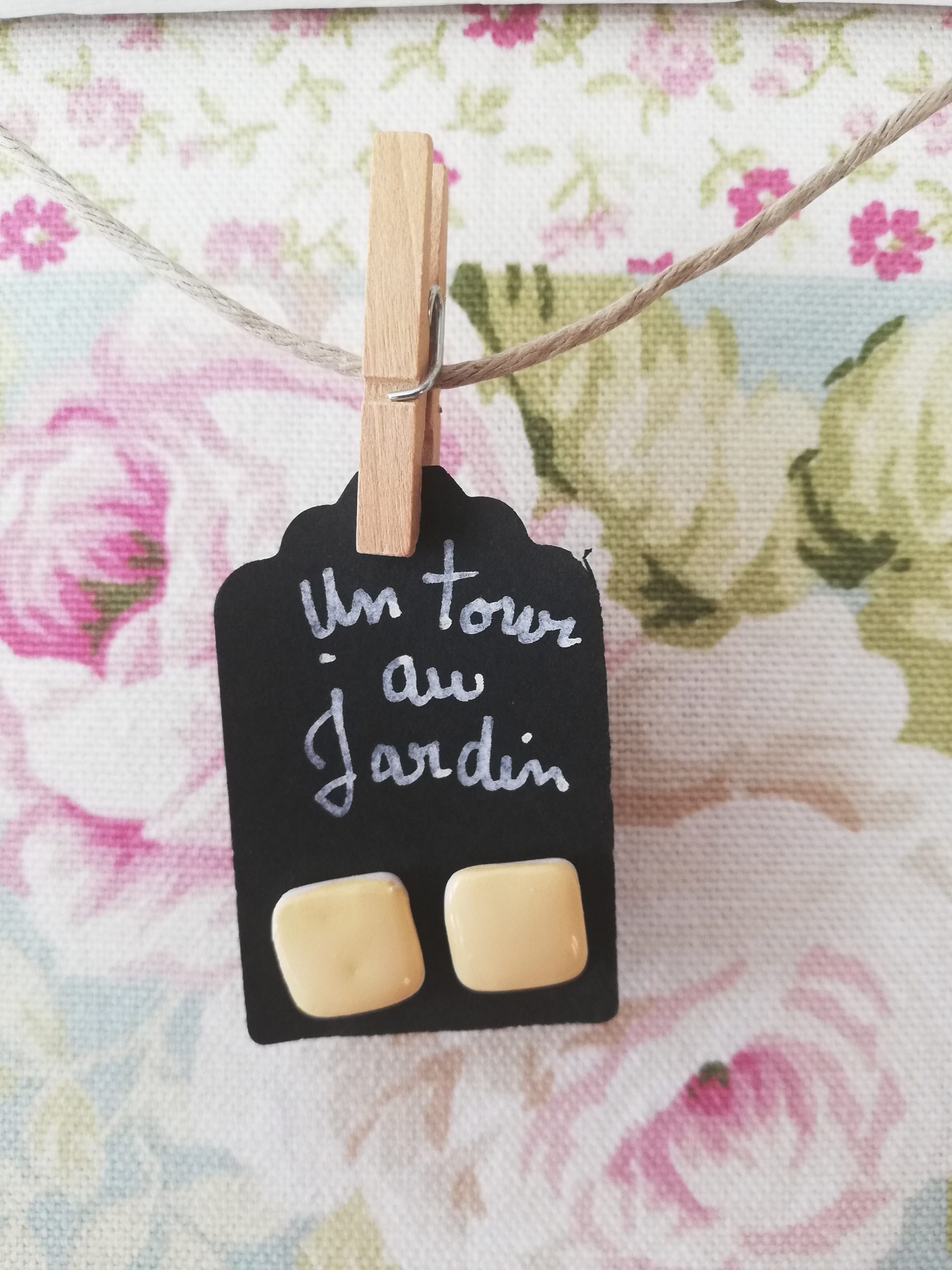 Boucles d’Oreilles couleur jaune poussin 9mmx9mm en faïence