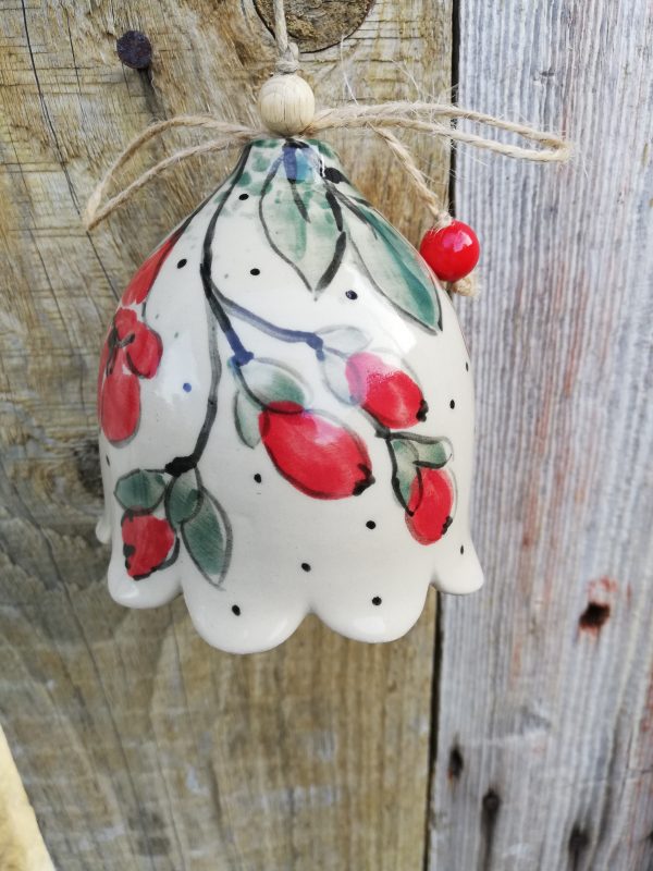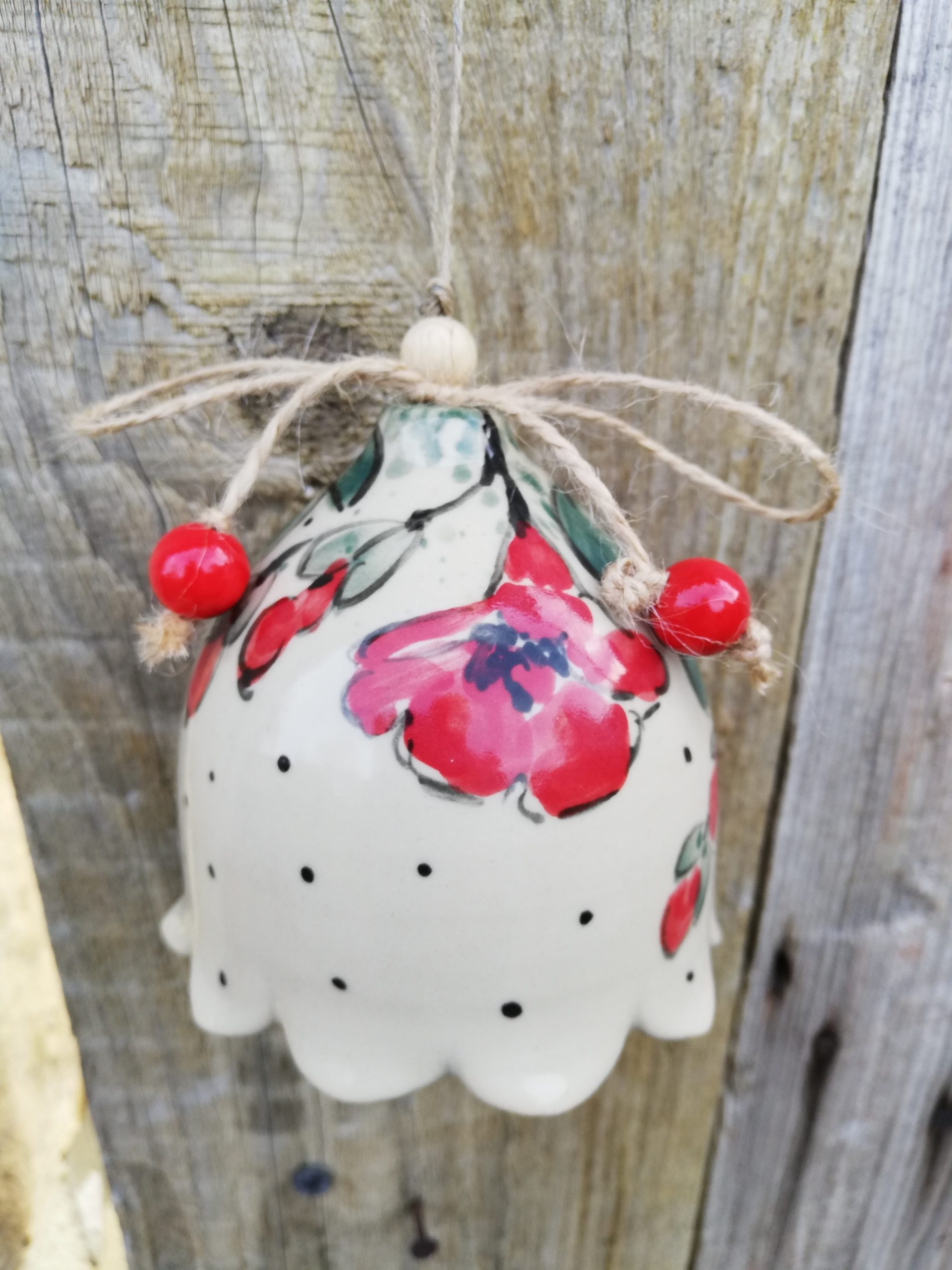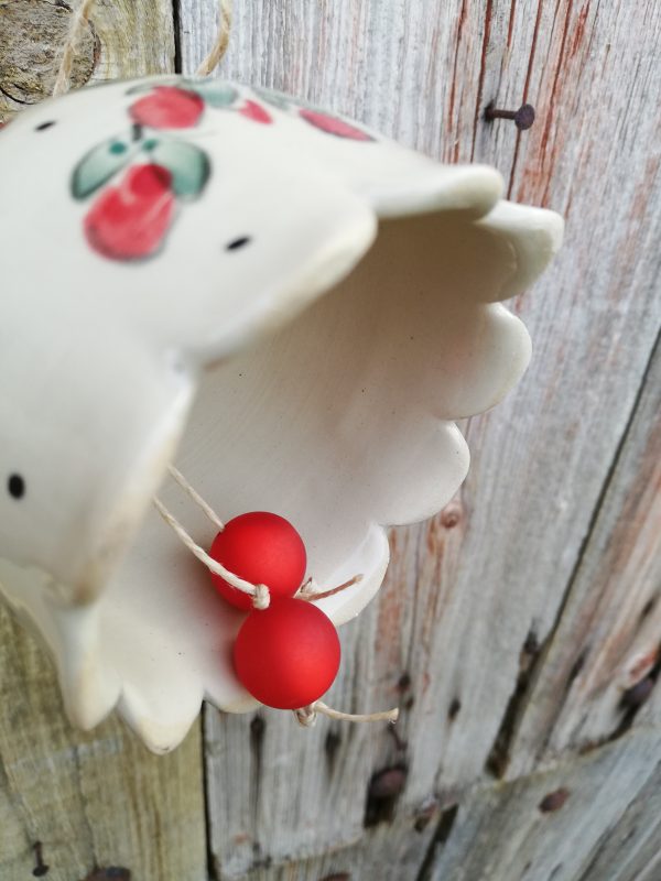 Petite clochette de jardin en grès non gélif, collection Céramic Bells, réalisée au tournage et décorée entièrement à la main, pièce unique
