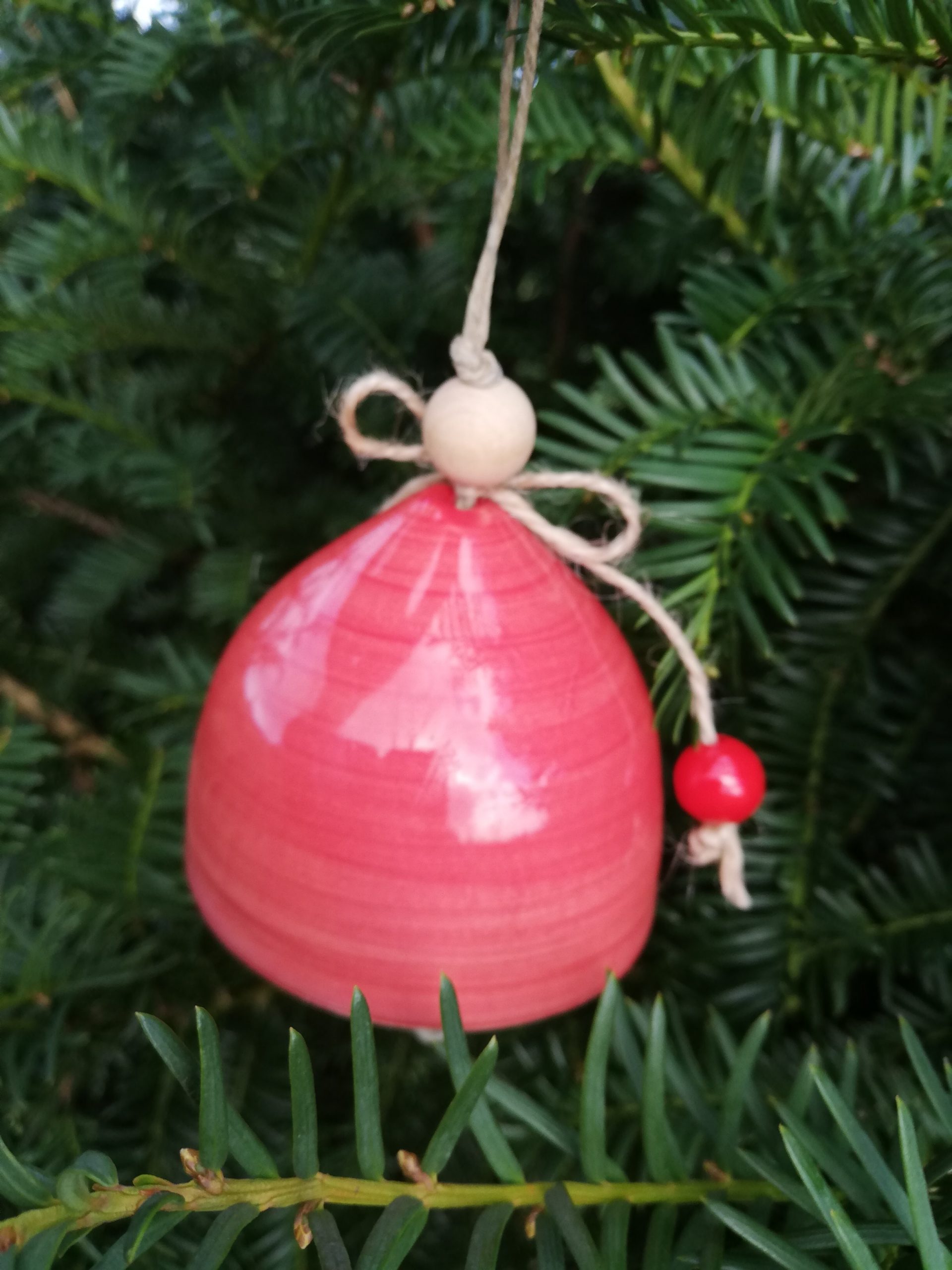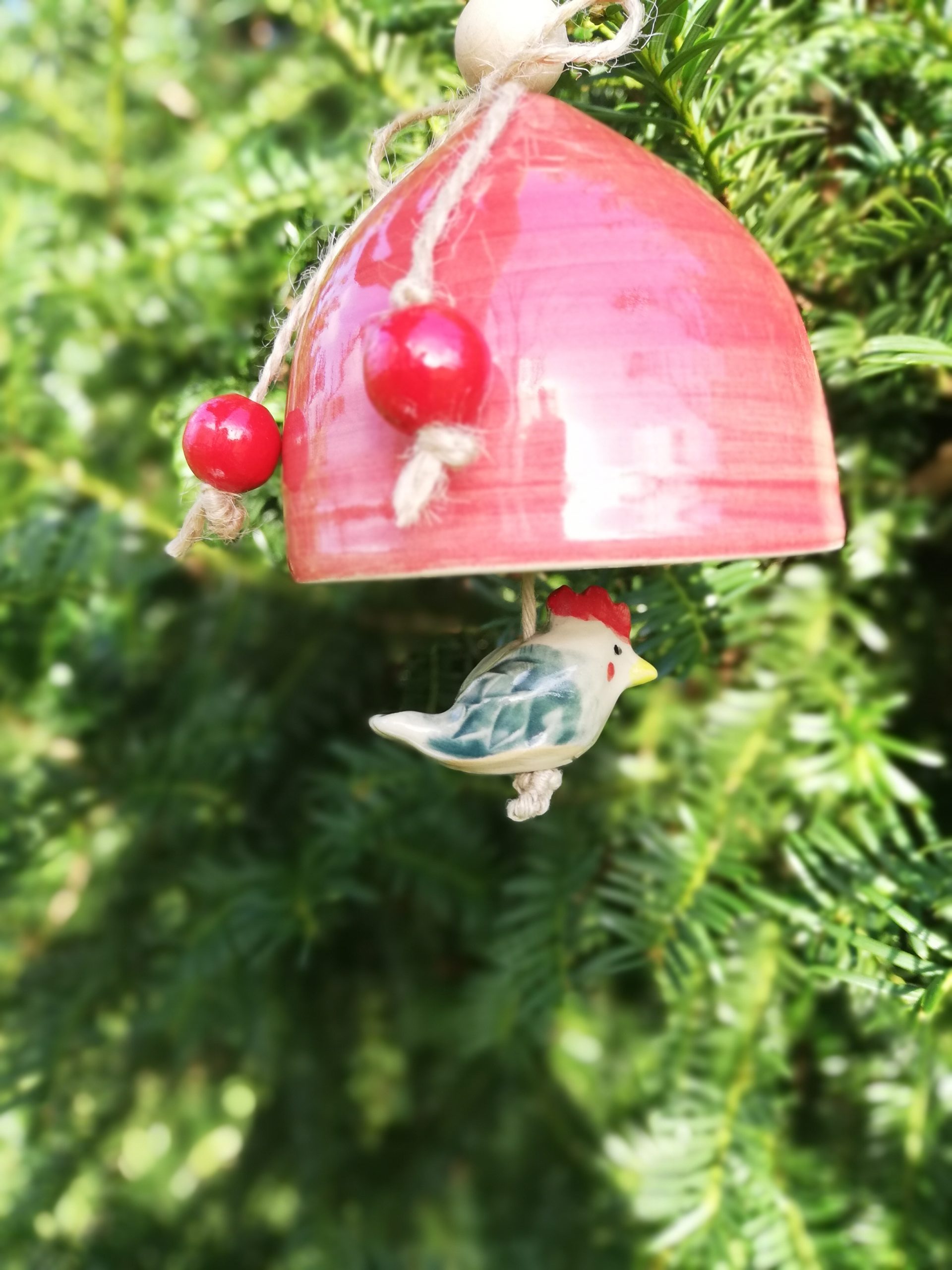 Petite clochette de jardin en grès non gélif, collection Céramic Bells, réalisée au tournage , sculpture en dessous entièrement réalisée à la main, pièce unique