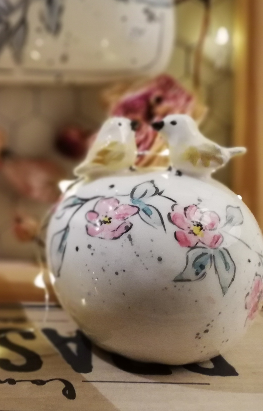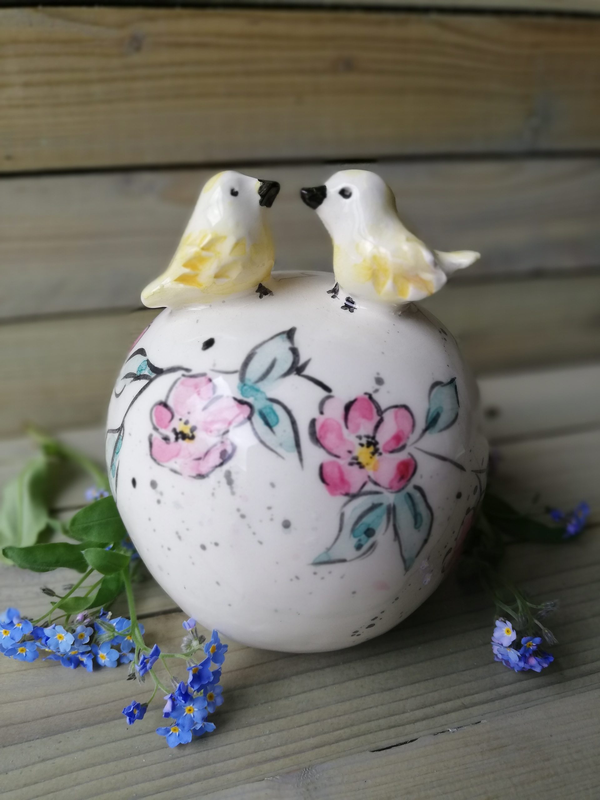 Boule décorative d’intérieur en faïence, (H11 cm x L8 cm), pièce unique entièrement façonnée et décorée à la main.