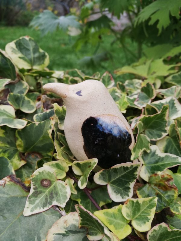Sculpture d’oiseau décoratif pour le jardin en  grès non gélif, pièce unique réalisée et décorée entièrement à la main