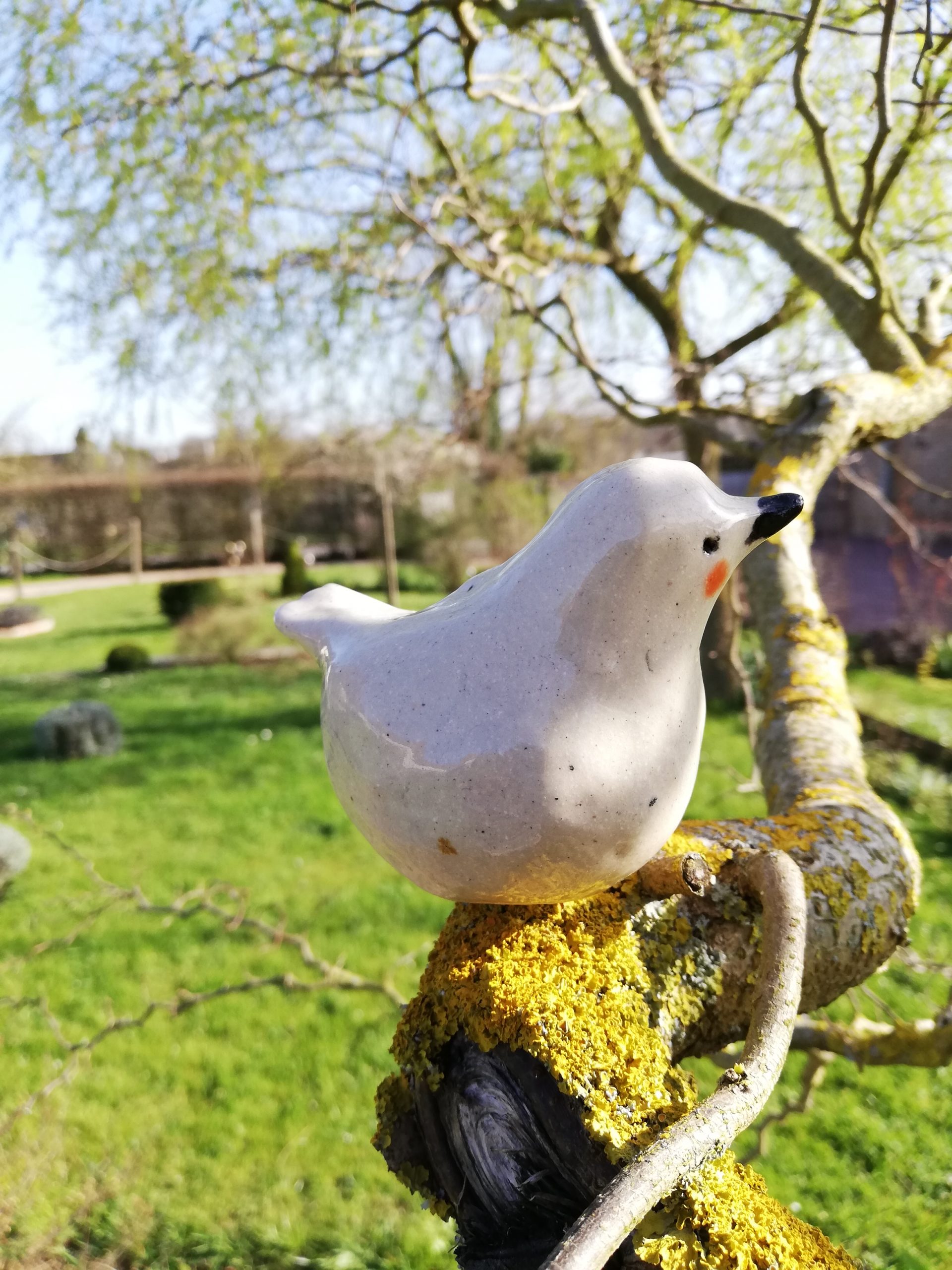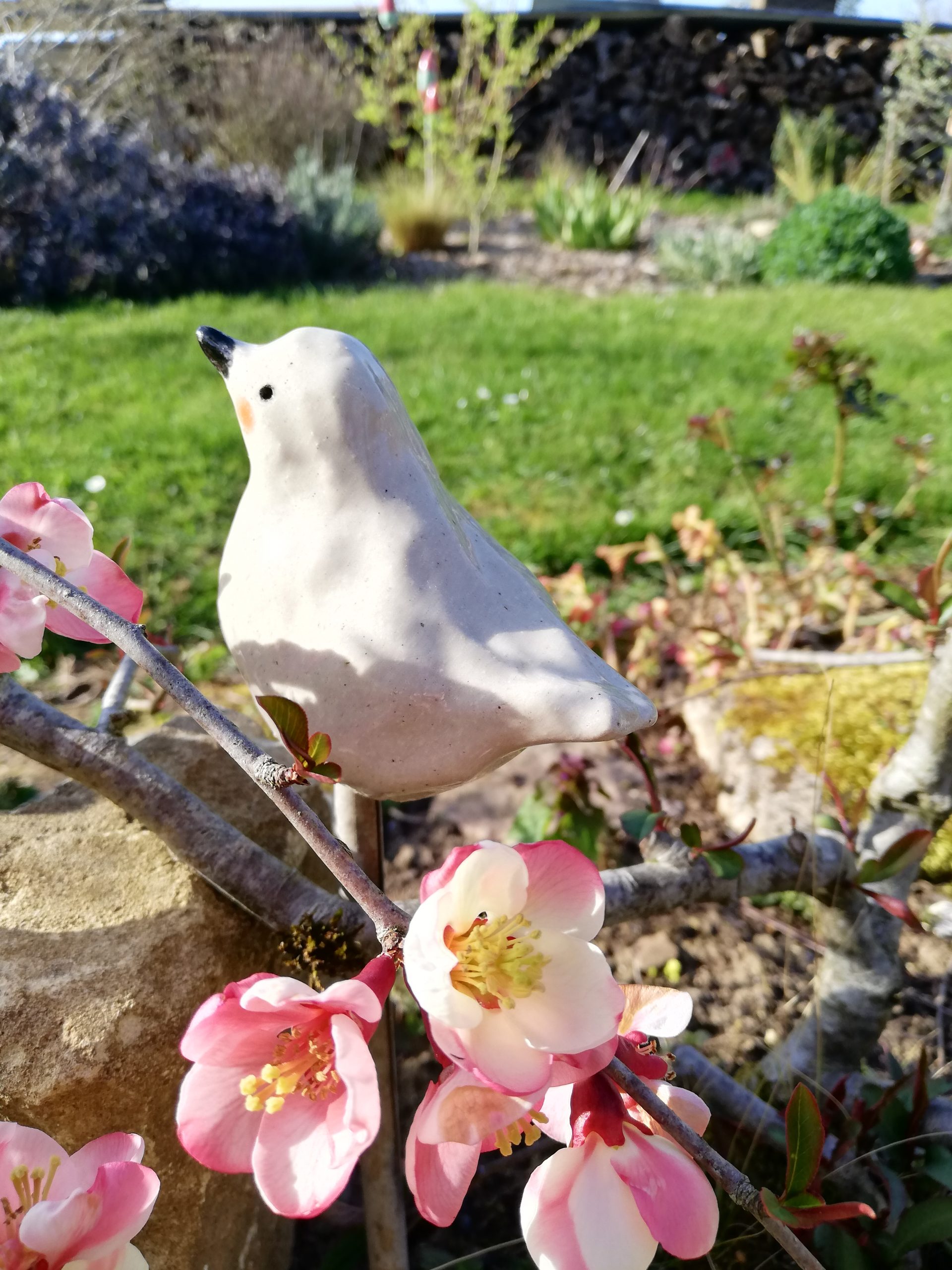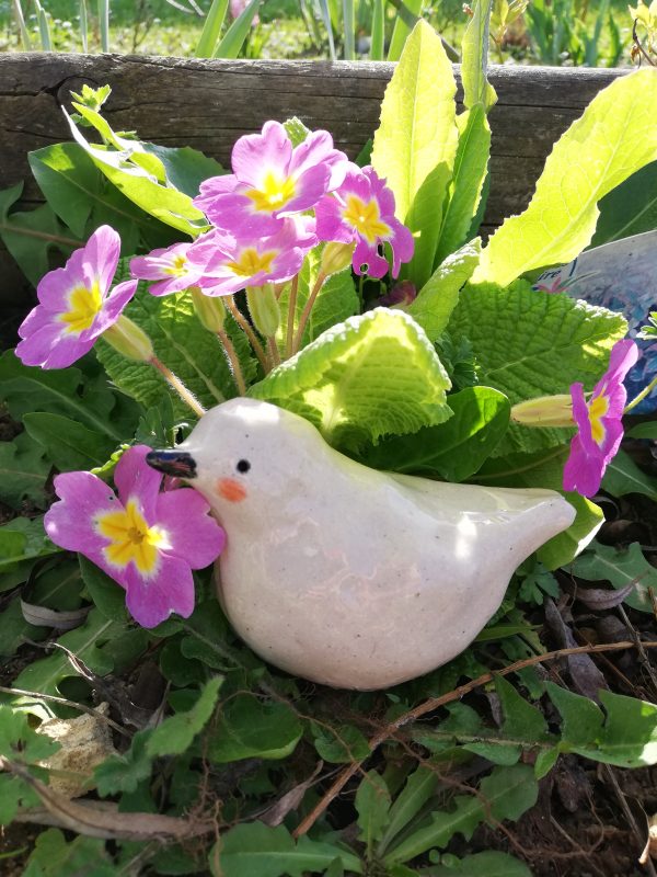 Sculpture d’oiseau pour le jardin en grès non gélif, (H6cm L9cm l5cm) pièce unique entièrement faite à la main