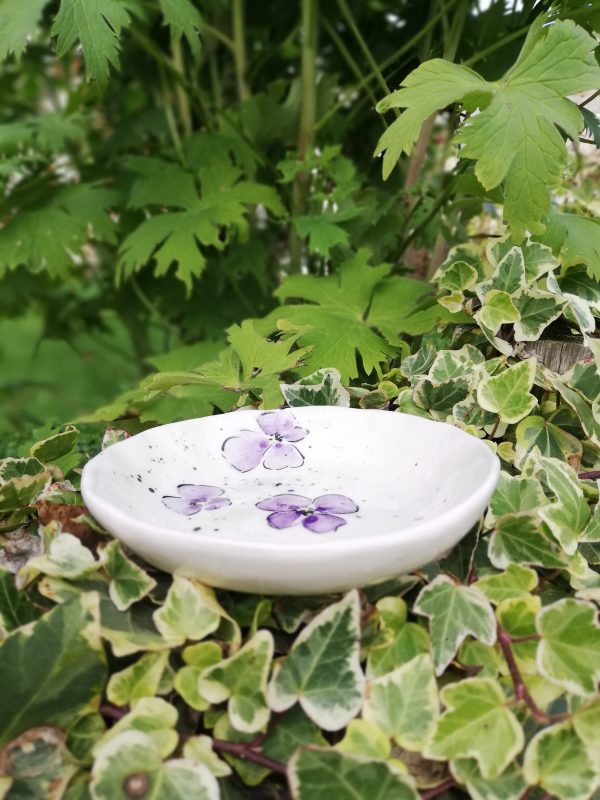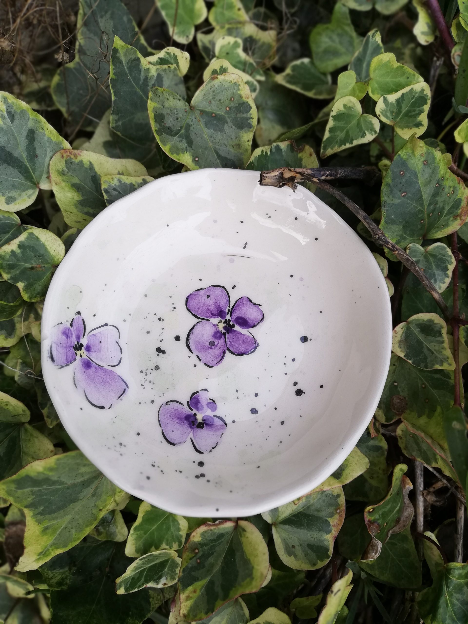 Petite soucoupe en faïence, collection air de printemps, réalisée au tournage et décorée entièrement à la main