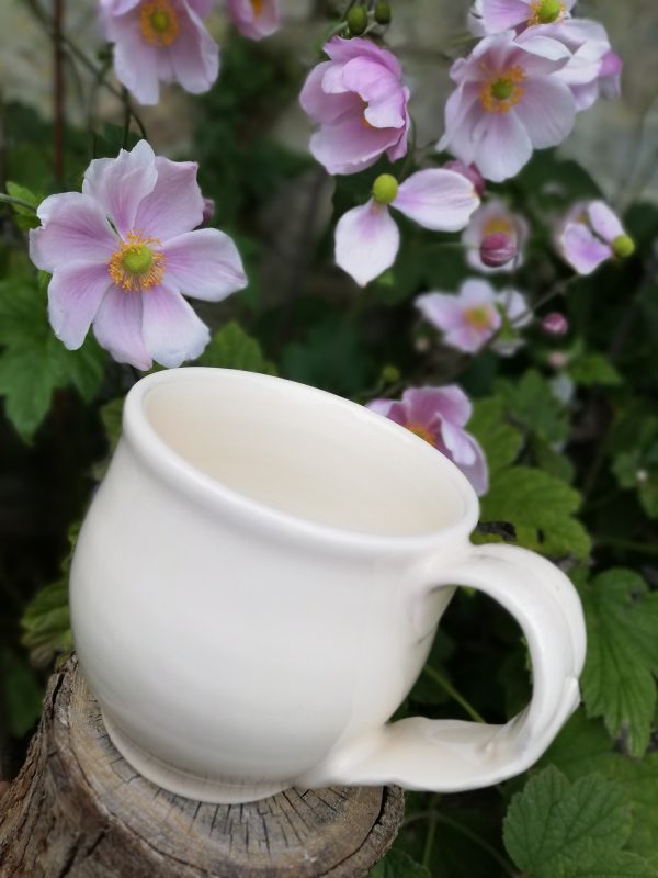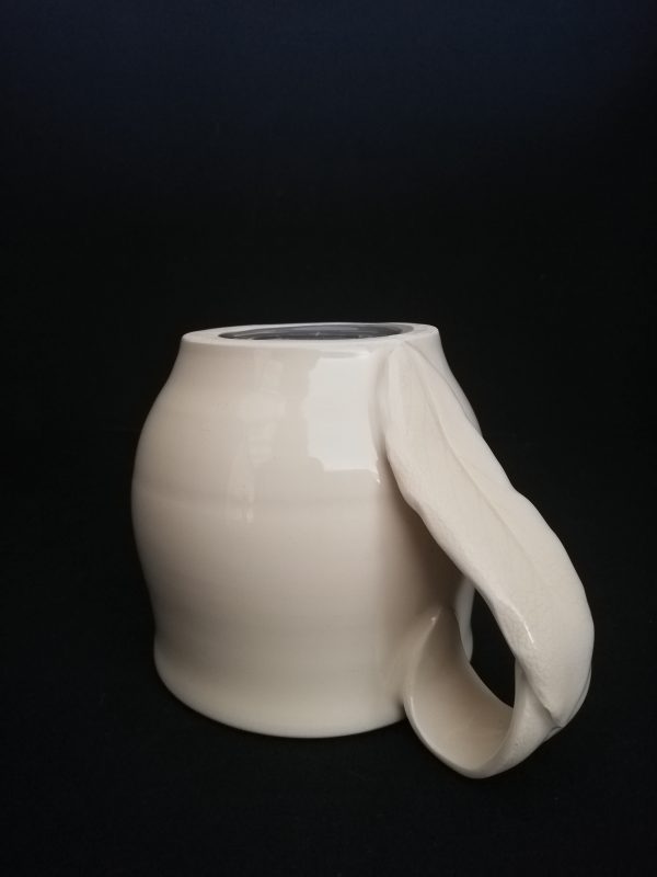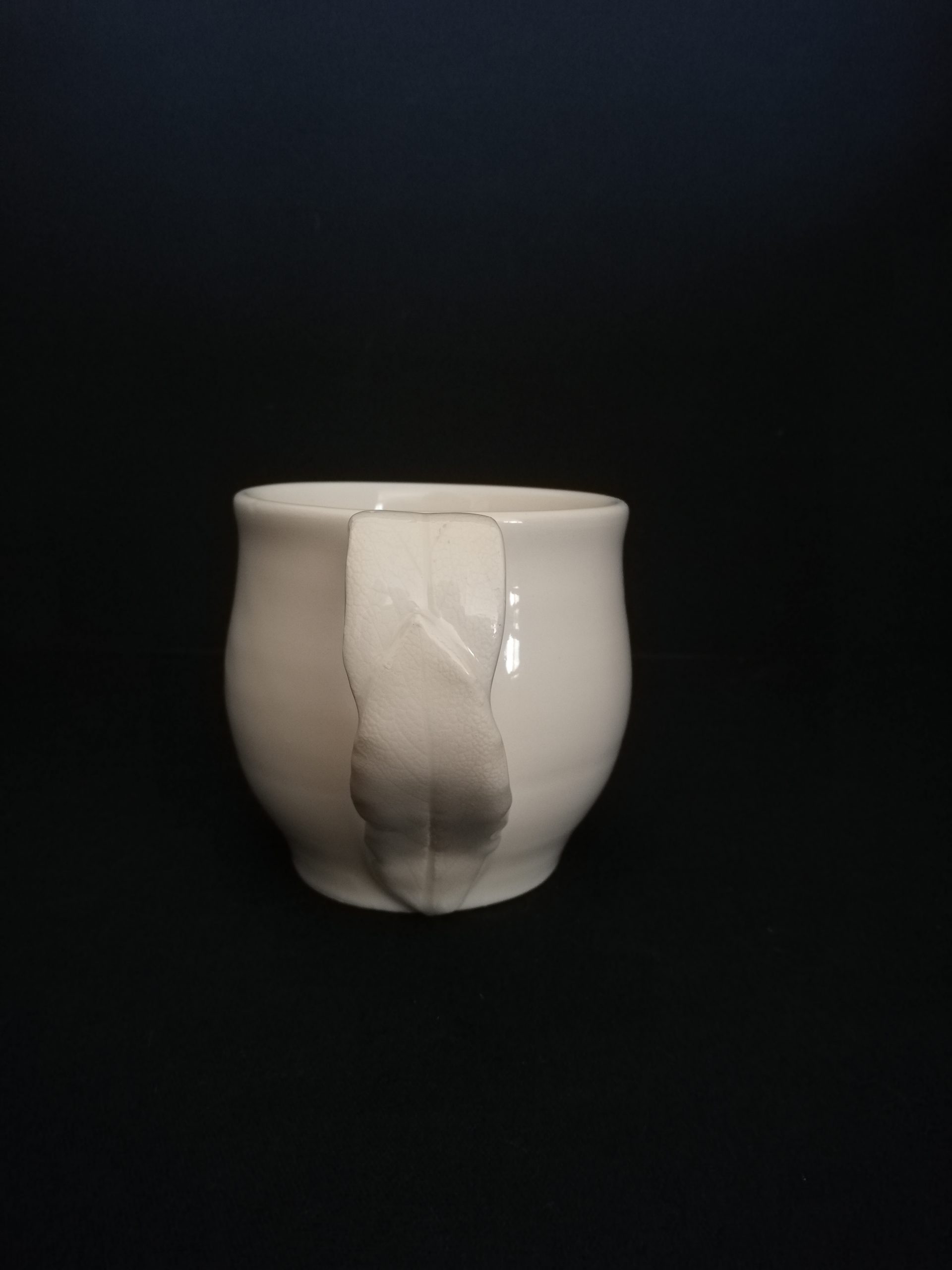 Tasse en céramique (faïence), Collection “Empreinte feuille”, tournée, pièce unique.