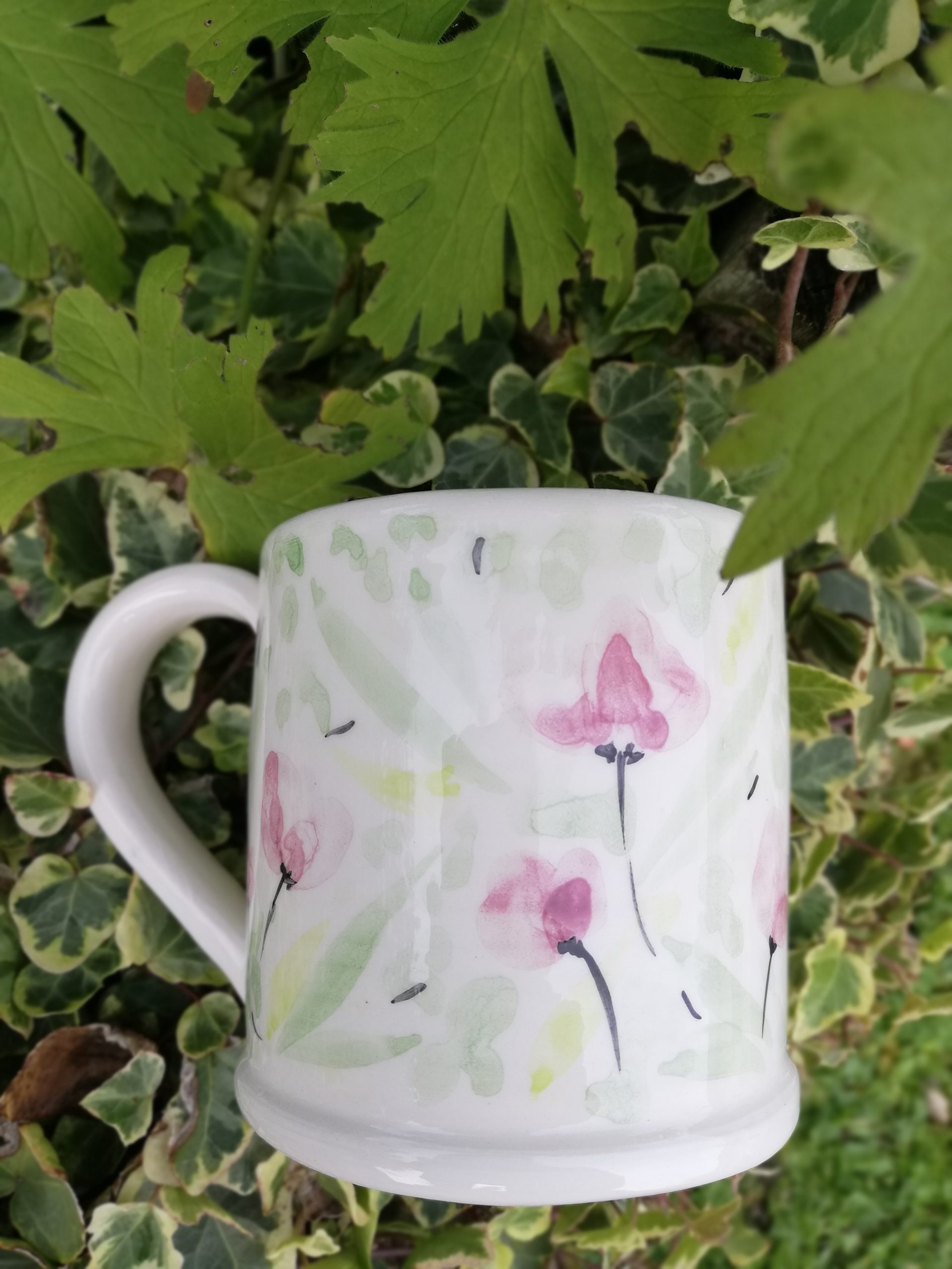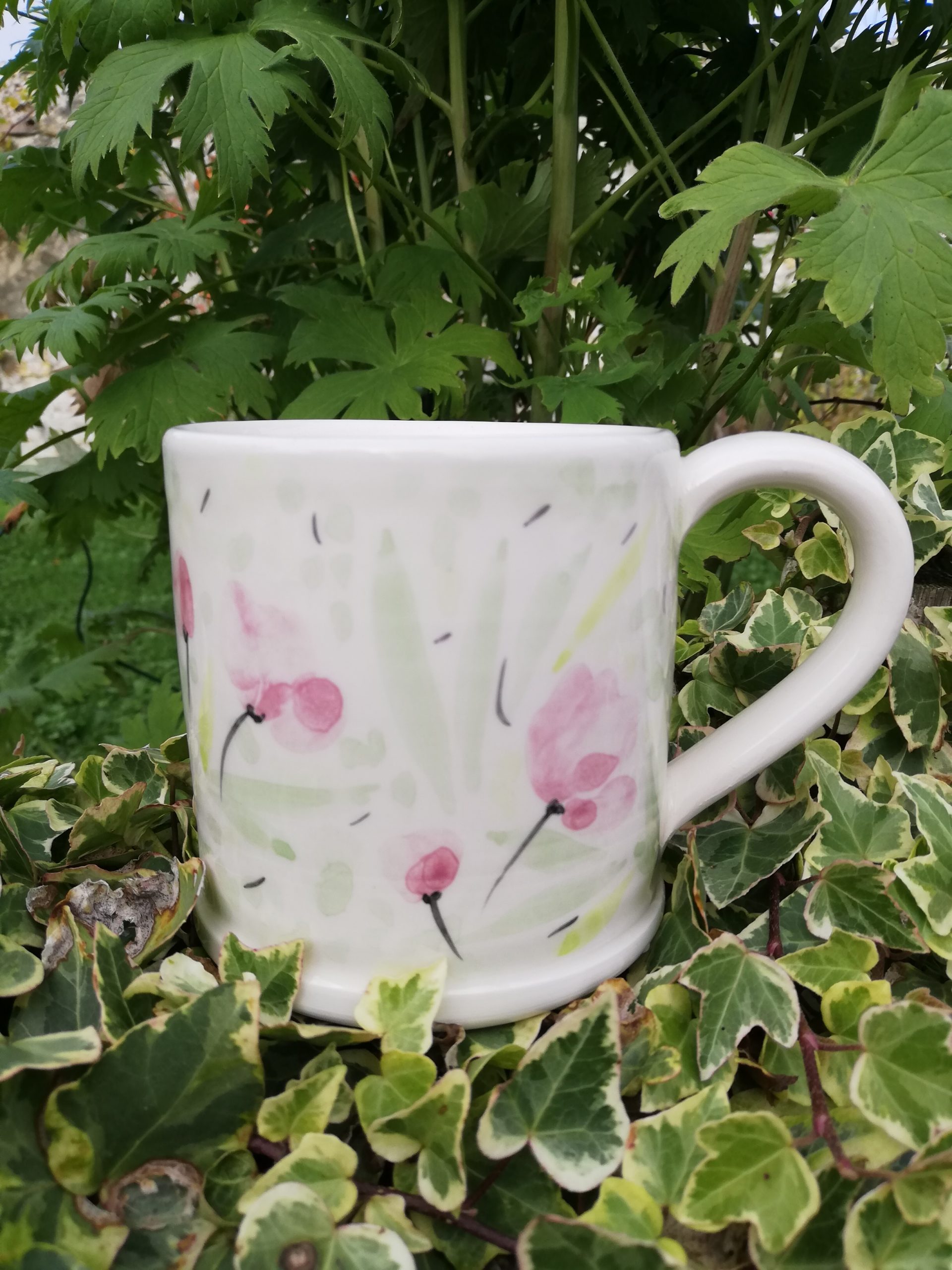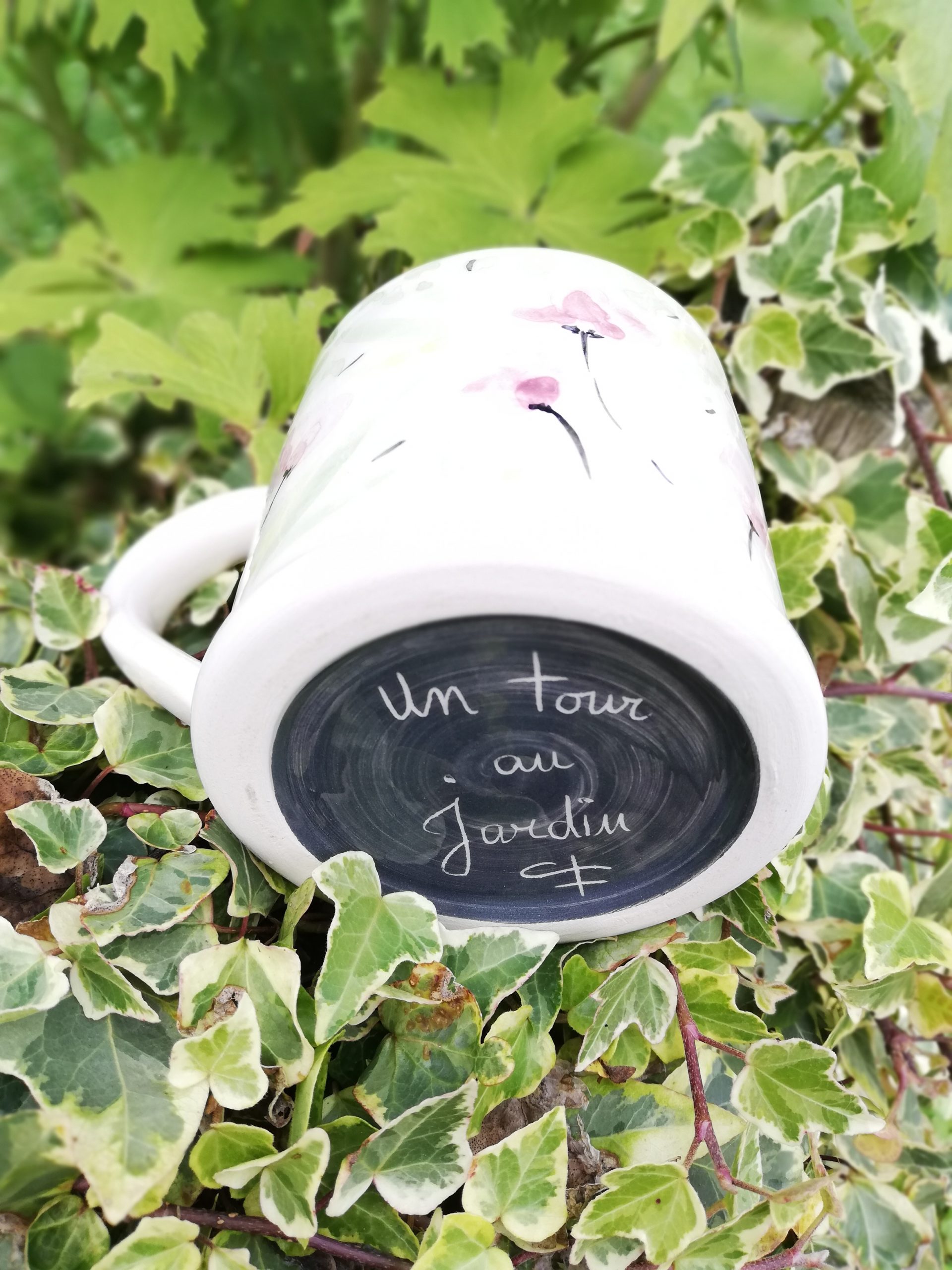 Tasse en faïence, réalisée au tournage et décorée à la main